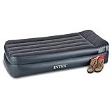 Self - inflating Intex Twin Raised Air Bed... PRICED LESS! Rip Van Winkle special! Unlike other types, this slice of heaven is a full 18 1/2"h. It provides the feeling of sleeping on a "real bed" without compromising the ability for easy transport. Due to an excess supply, you can enjoy BIG savings! More: Built-in Fast Fill electric pump inflates / deflates quickly; Easily adjusts for personal firmness; Cozy, flocked fabric mattress keeps standard sheets in place; Combo I-beam / wave beam construction is patterned after a traditional mattress / boxspring system; Built-in pillow; 40 x 80 x 19 1/2", weighs 14 1/2 lbs. Carry bag included. Act Now! Intex Twin Raised Air Bed, Black